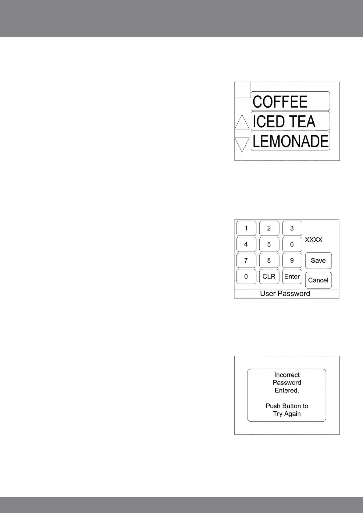 (indicated with dashed lines) of the ‘beverage selection’ screen