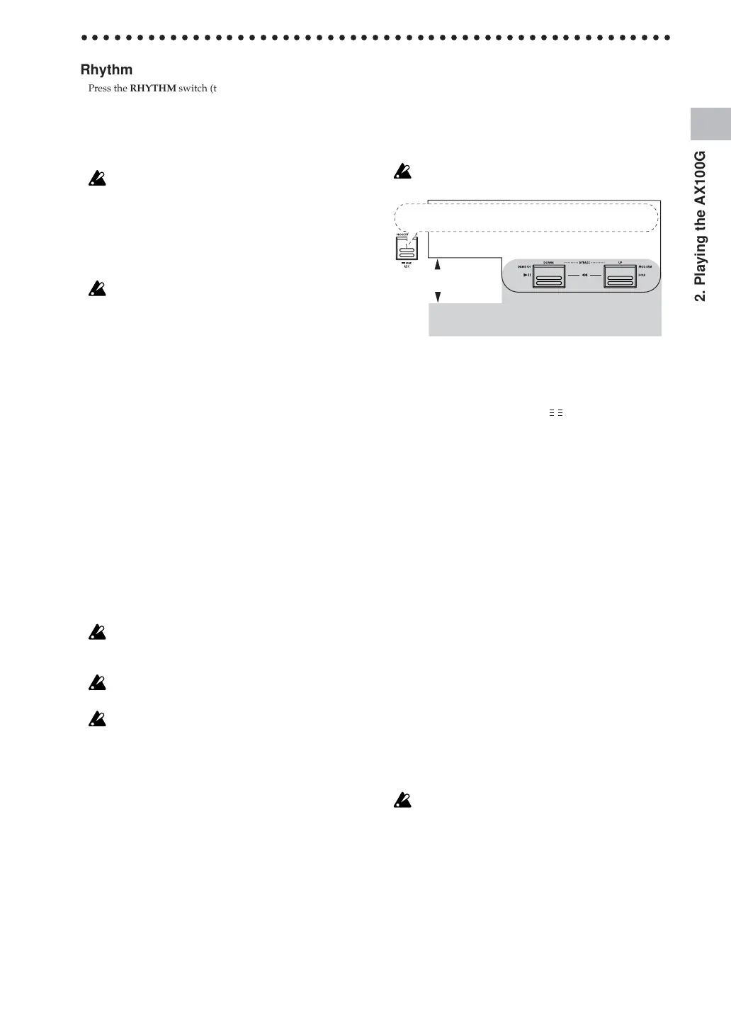To stop the rhythm, press the RHYTHM switch while the rhythm