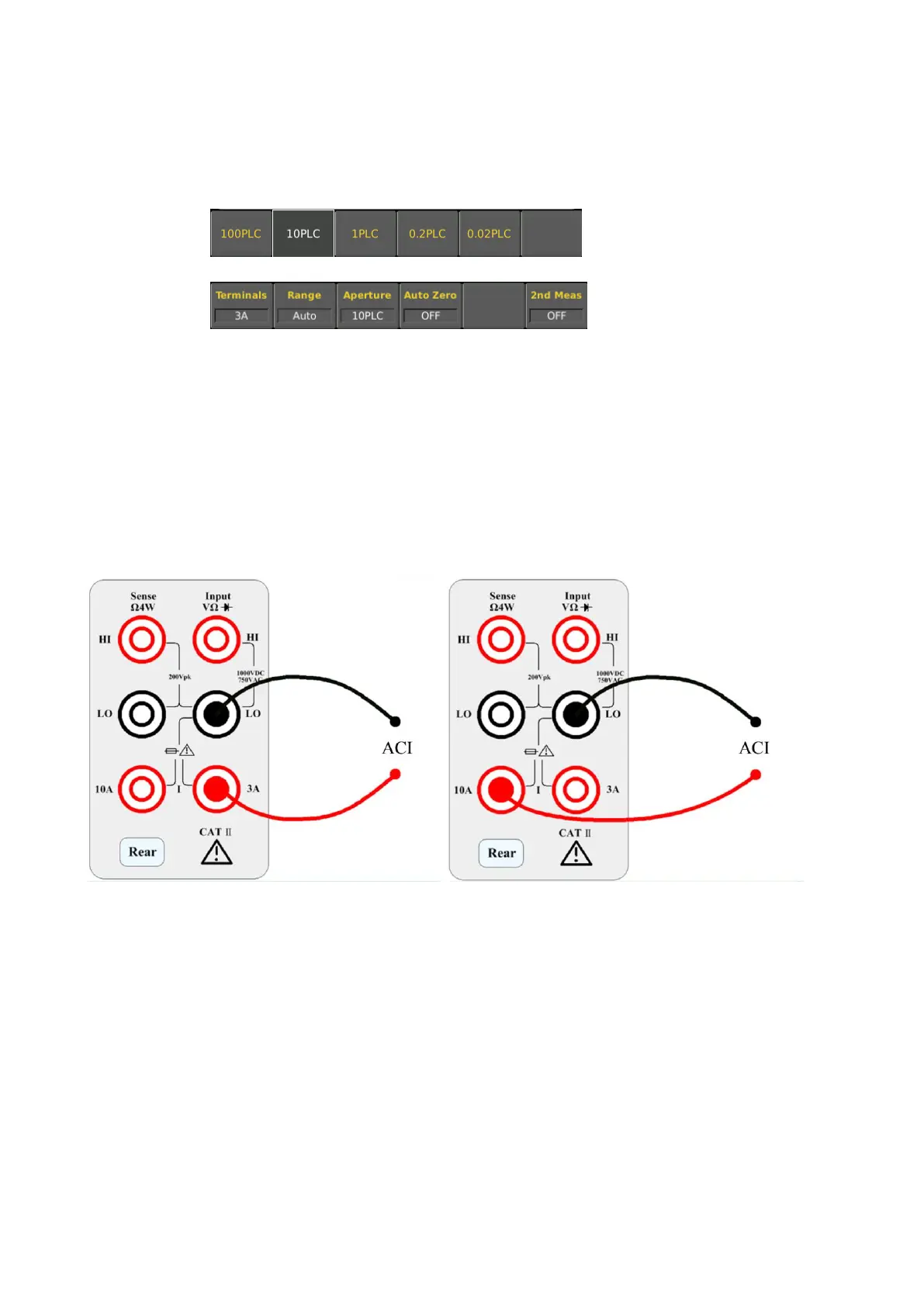 integration time, the higher the accuracy but the slower the measurement. 1PLC, 10PLC, 100PLC can inhibit the