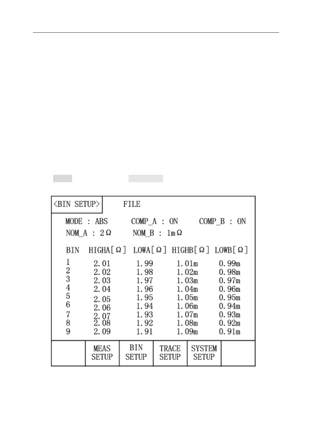 Press SETUP key and then press BIN SETUP in soft key area to enter into the <BIN
