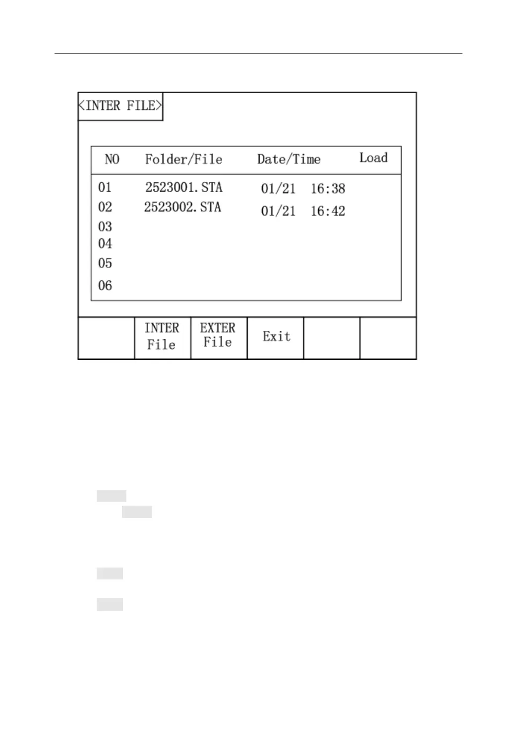 Press LOAD, if the file name that the cursor locates is not empty, [YES] and [NO]