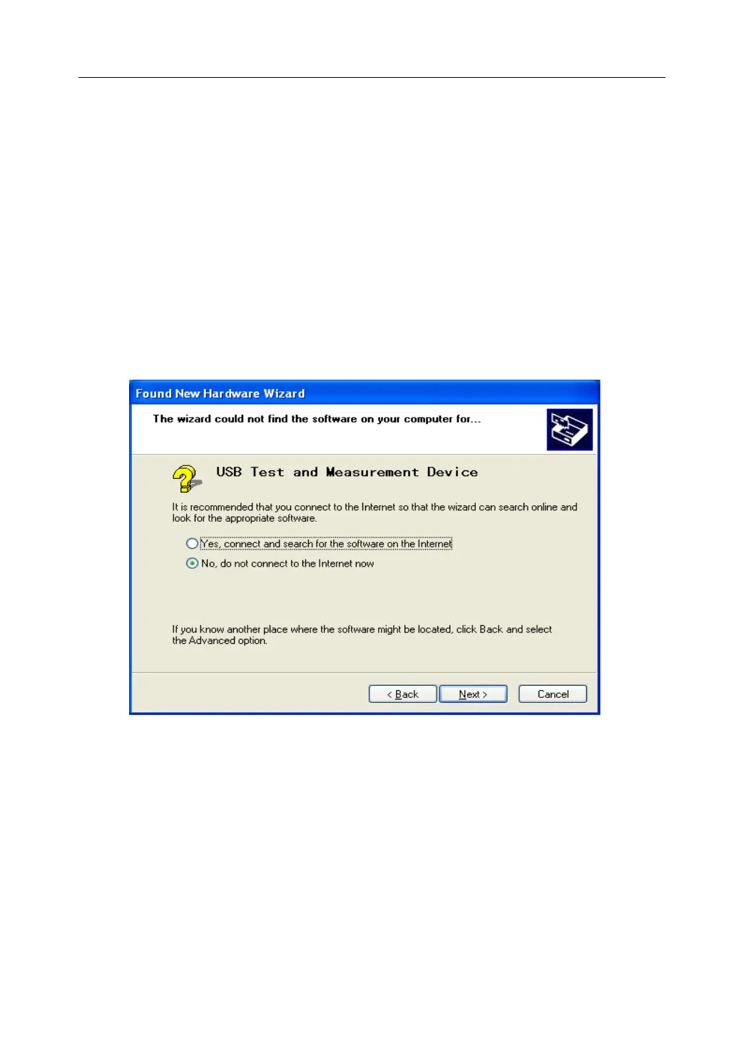 When TH2523 is first connected to a PC through a USB cable, the prompt information –Found