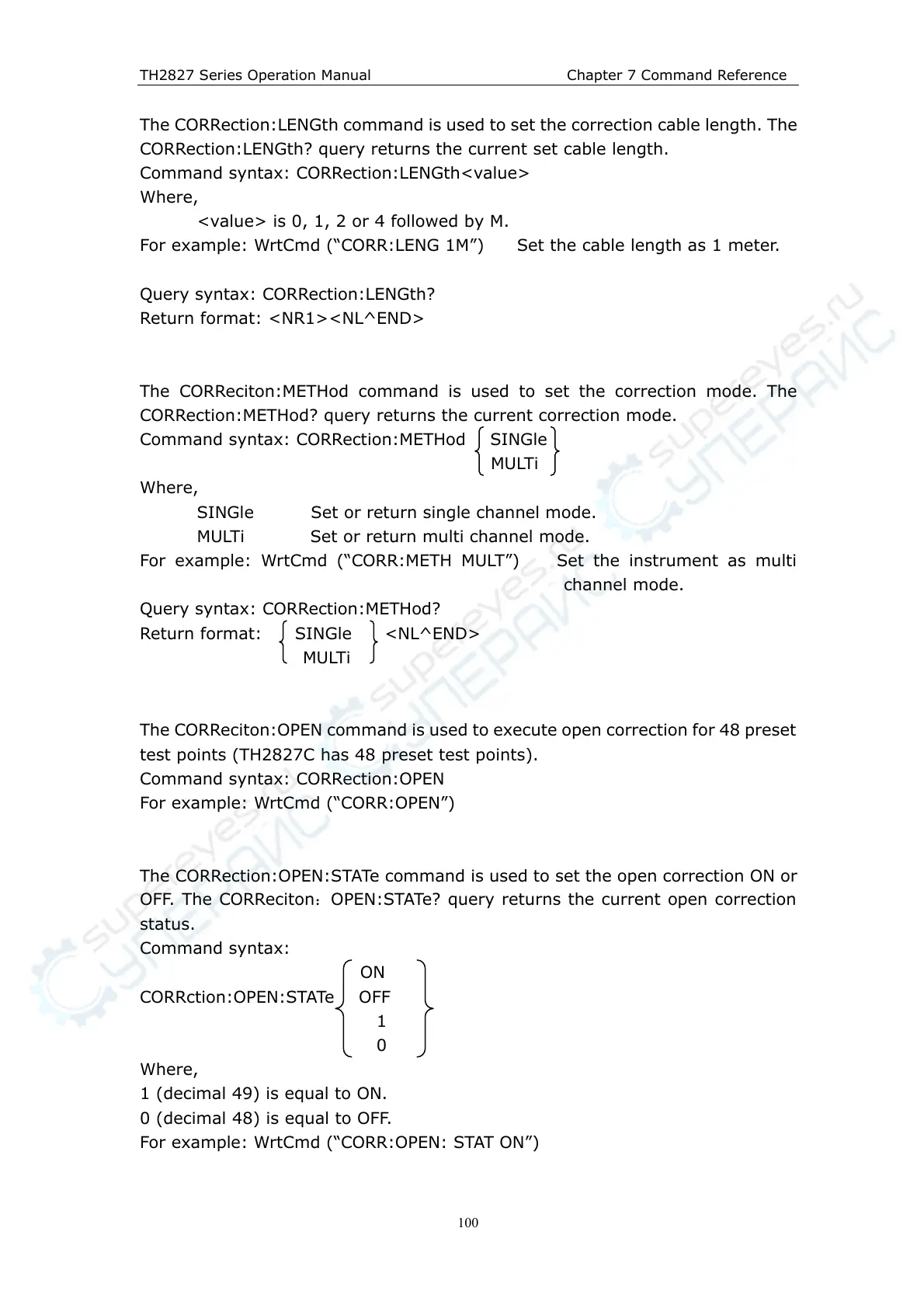 For example: WrtCmd (“CORR:LENG 1M”) Set the cable length as 1 meter.