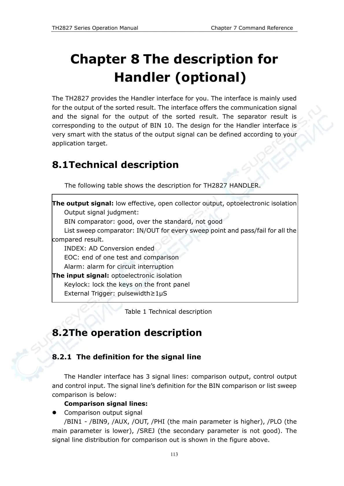 The following table shows the description for TH2827 HANDLER.