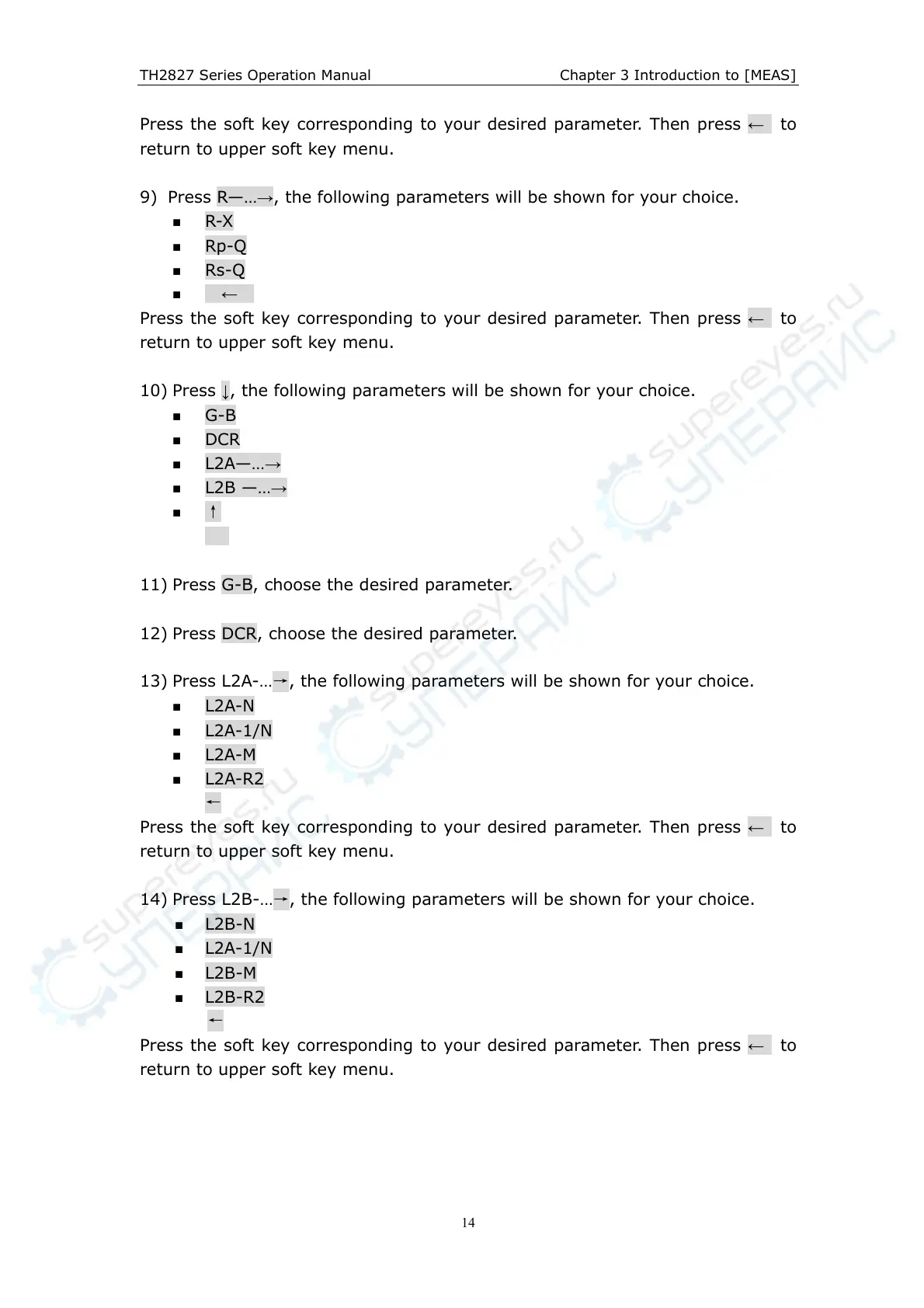 14) Press L2B-…→, the following parameters will be shown for your choice.