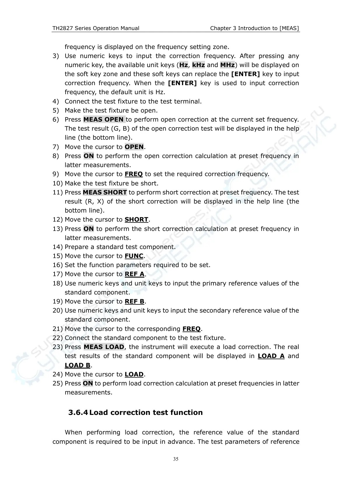23) Press MEAS LOAD, the instrument will execute a load correction. The real