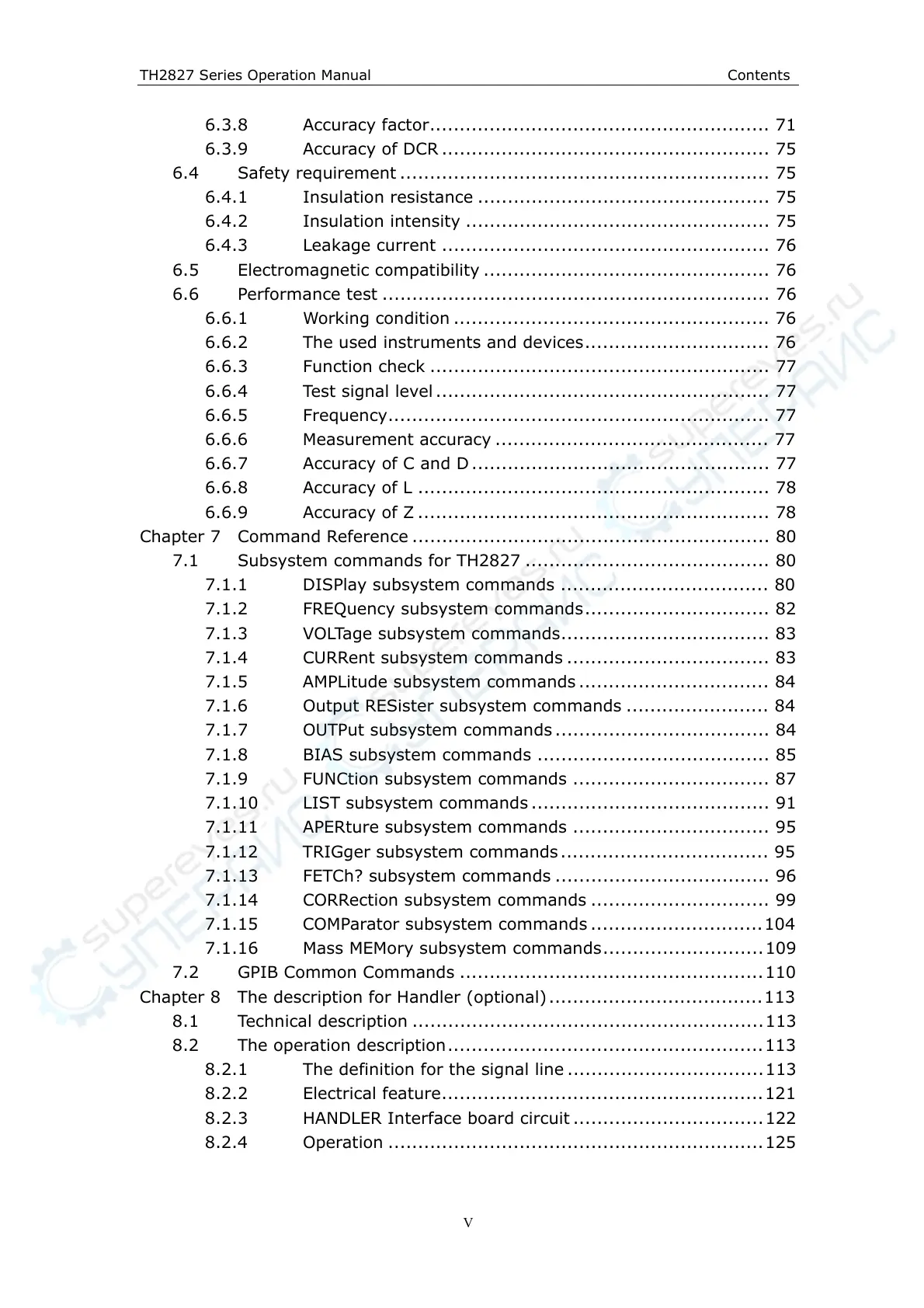 7.1 Subsystem commands for TH2827 ......................................... 80