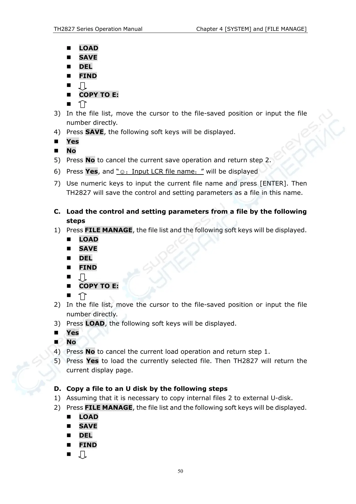 TH2827 Series Operation Manual Chapter 4 [SYSTEM] and [FILE MANAGE]