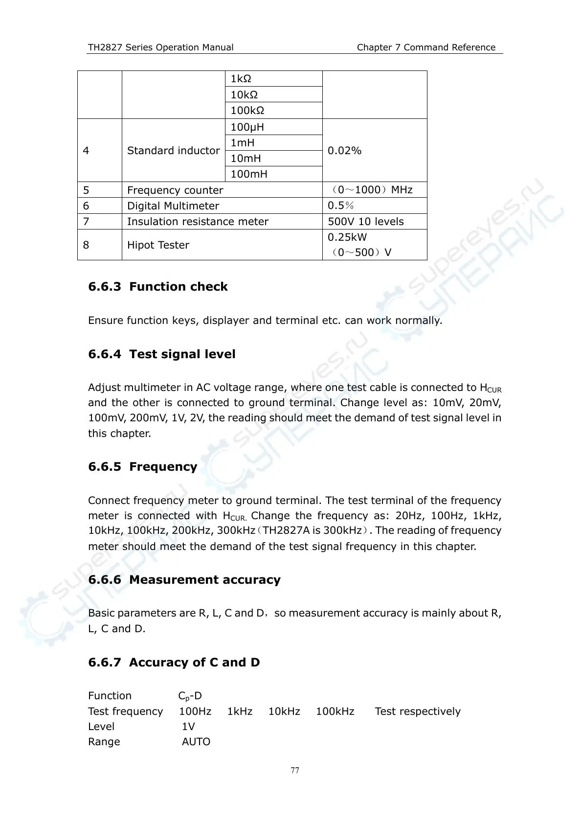 10kHz, 100kHz, 200kHz, 300kHz(TH2827A is 300kHz). The reading of frequency
