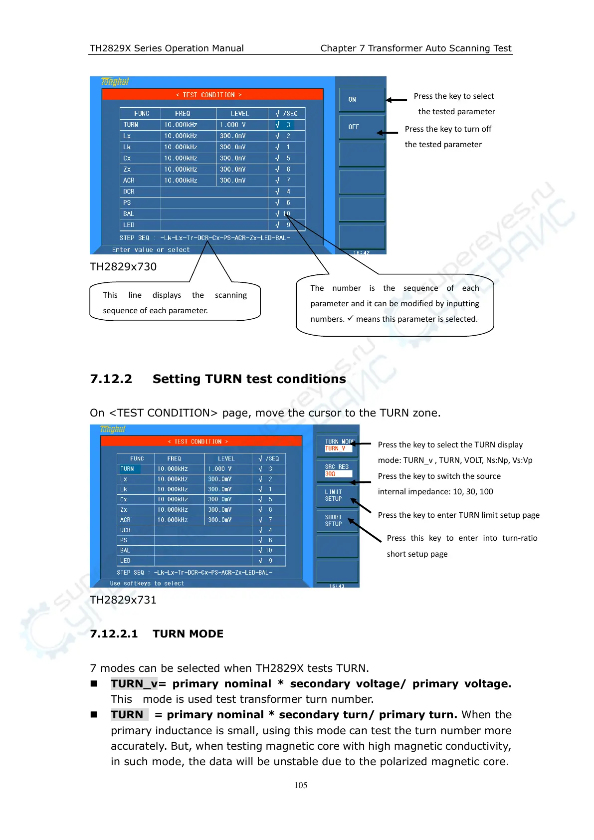 7 modes can be selected when TH2829X tests TURN.