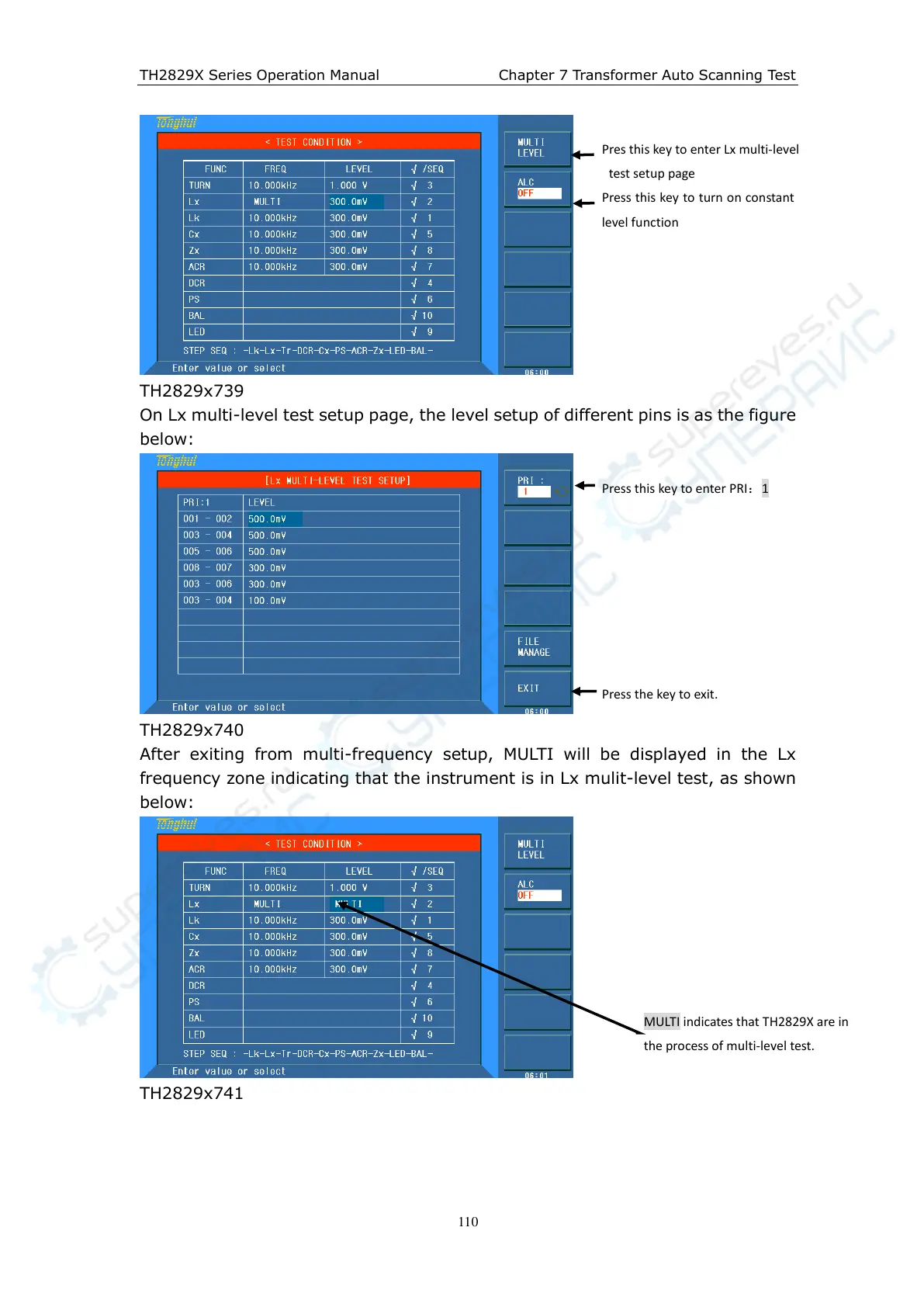frequency zone indicating that the instrument is in Lx mulit-level test, as shown