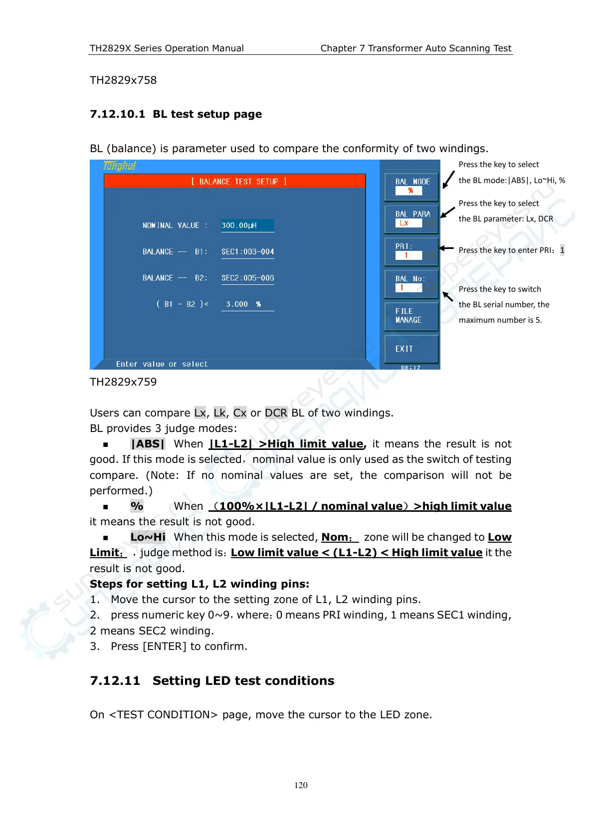 TH2829X Series Operation Manual Chapter 7 Transformer Auto Scanning Test