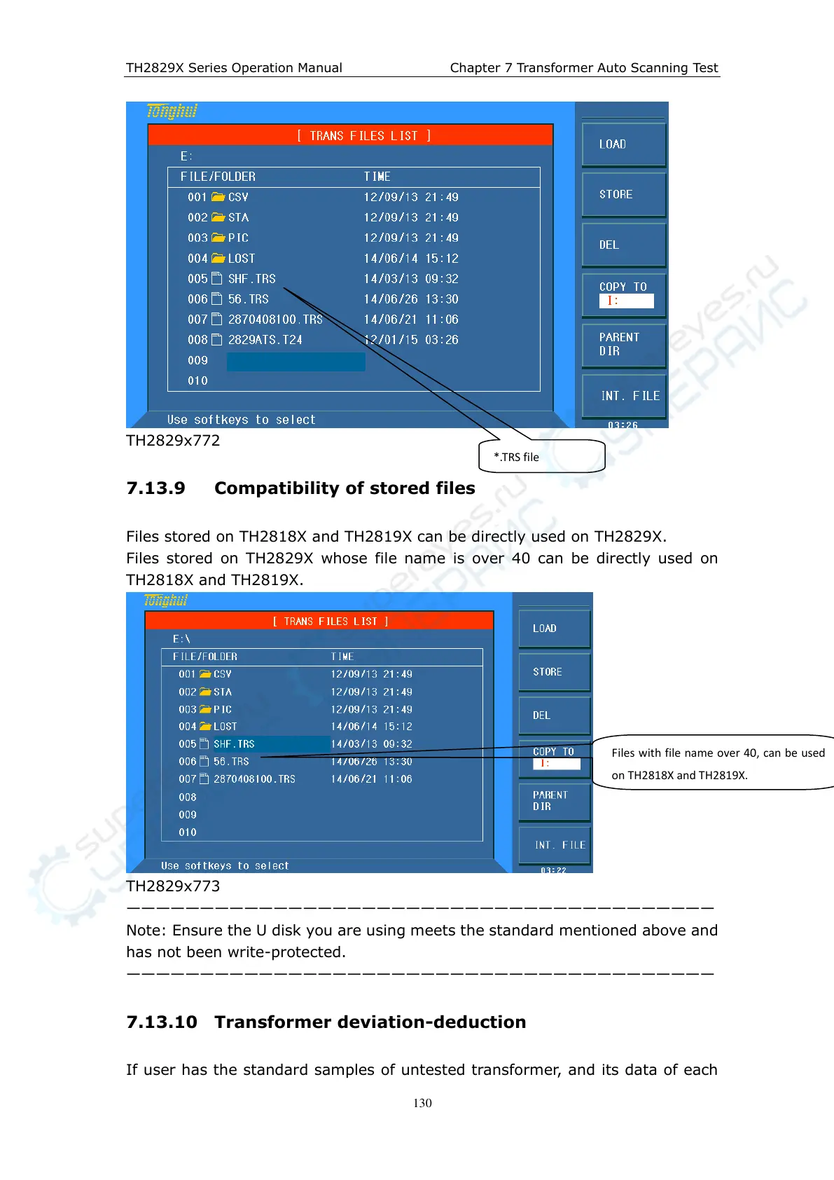Files stored on TH2818X and TH2819X can be directly used on TH2829X.