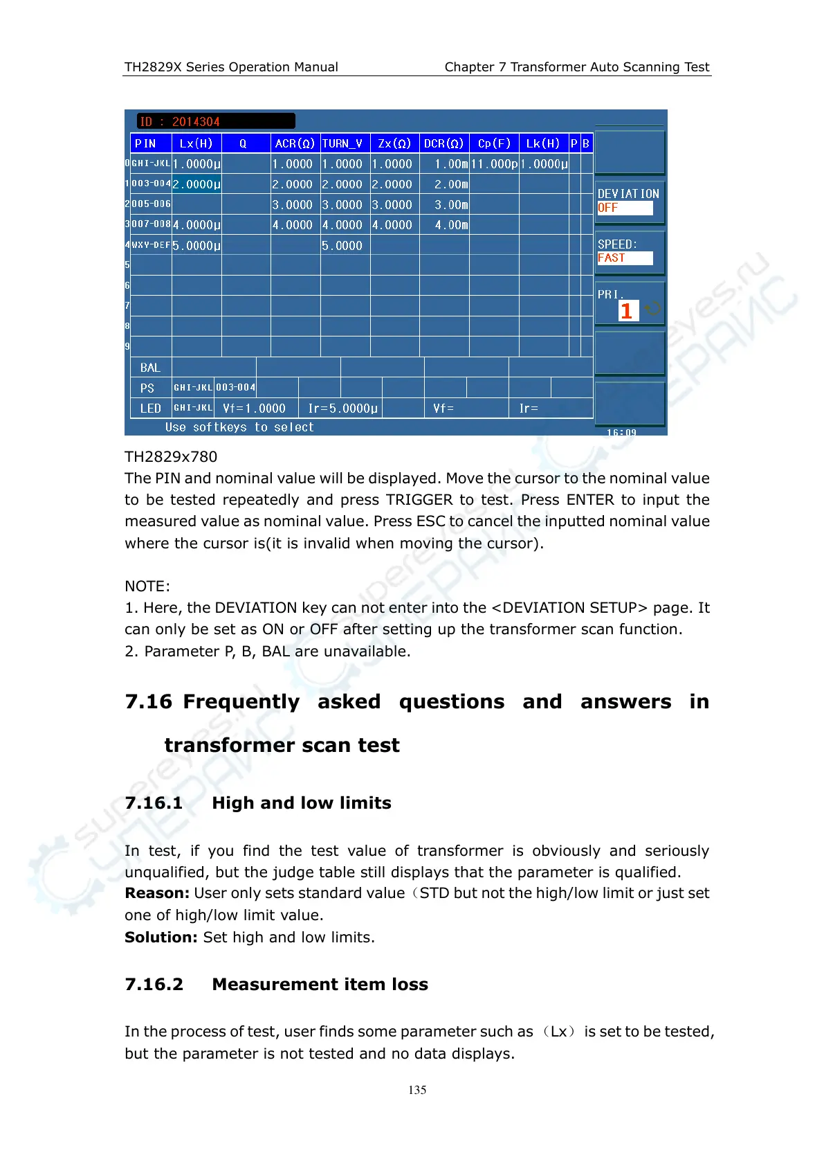 TH2829X Series Operation Manual Chapter 7 Transformer Auto Scanning Test