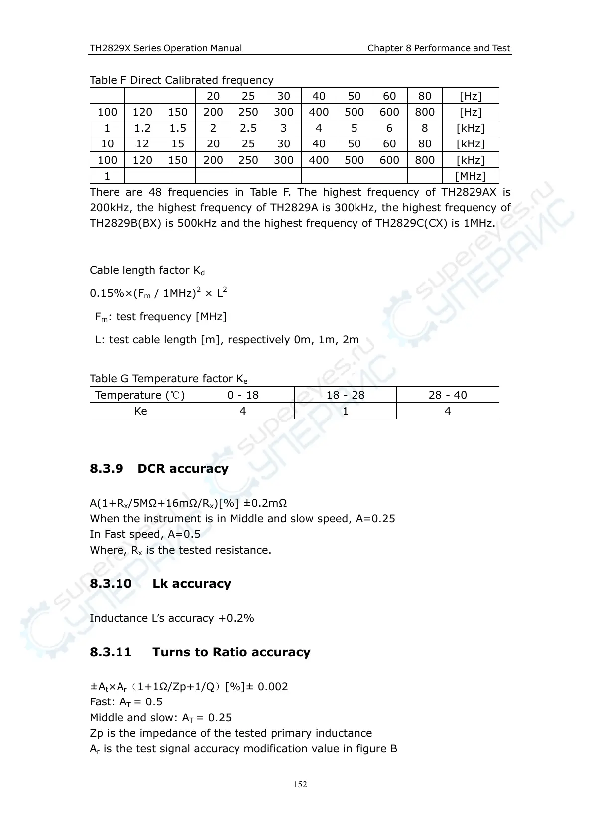 TH2829X Series Operation Manual Chapter 8 Performance and Test