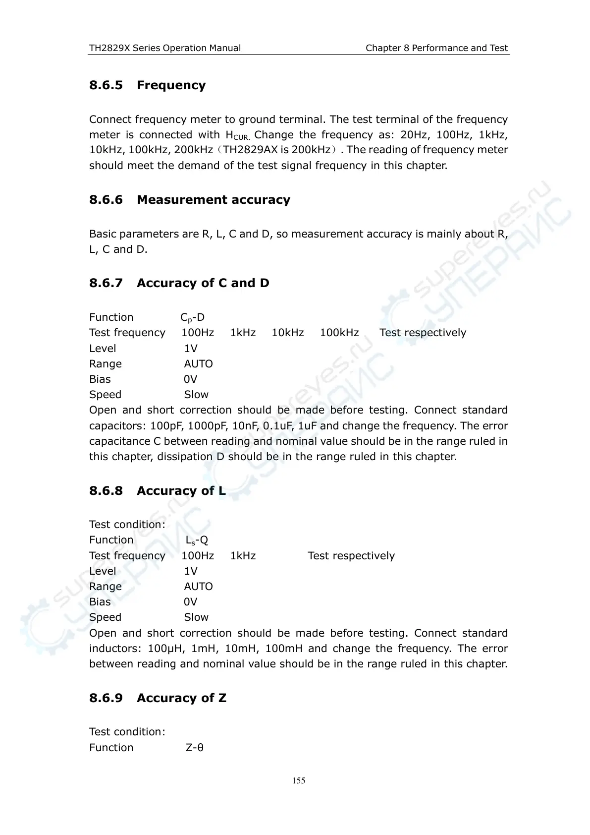 TH2829X Series Operation Manual Chapter 8 Performance and Test