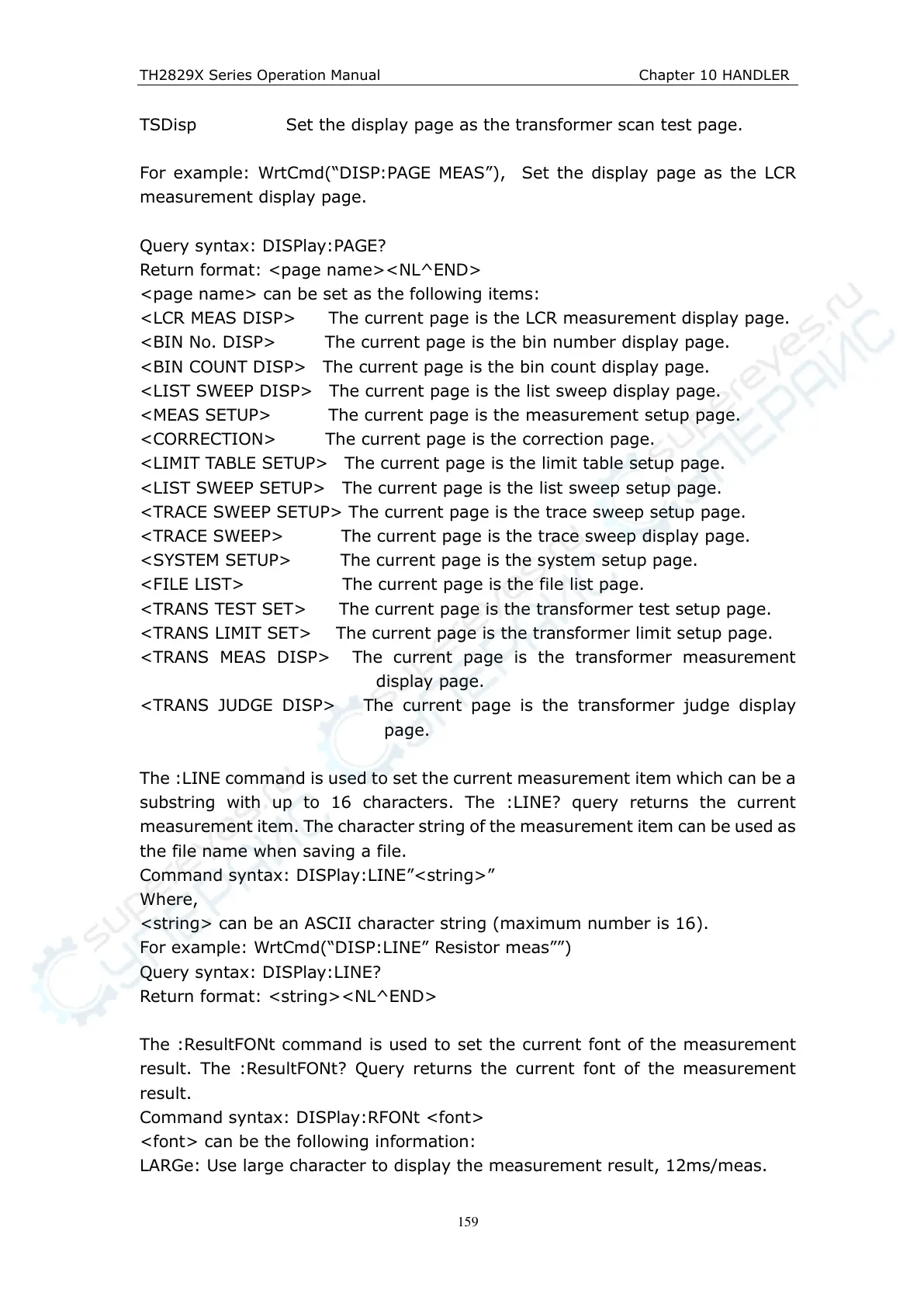 For example: WrtCmd(“DISP:PAGE MEAS”), Set the display page as the LCR