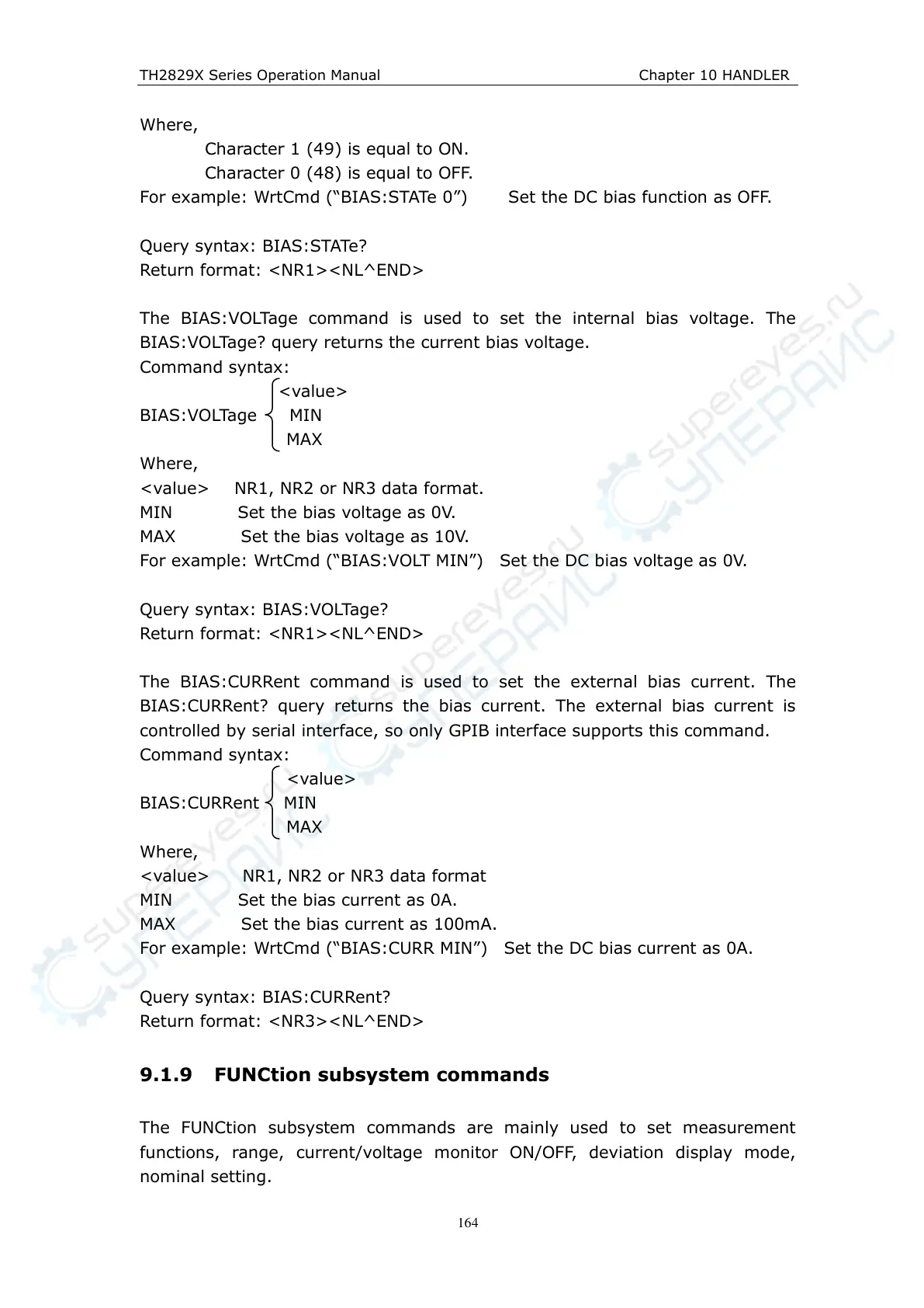 For example: WrtCmd (“BIAS:STATe 0”) Set the DC bias function as OFF.