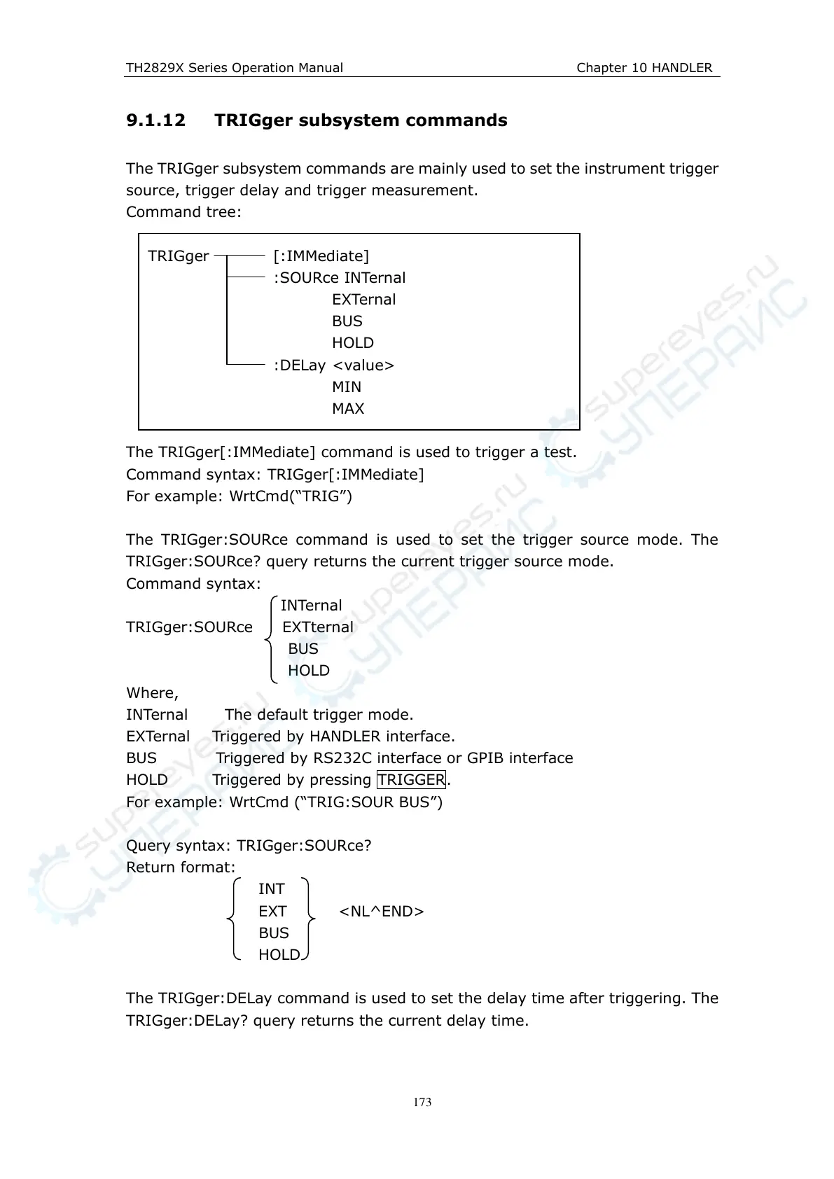 The TRIGger subsystem commands are mainly used to set the instrument trigger