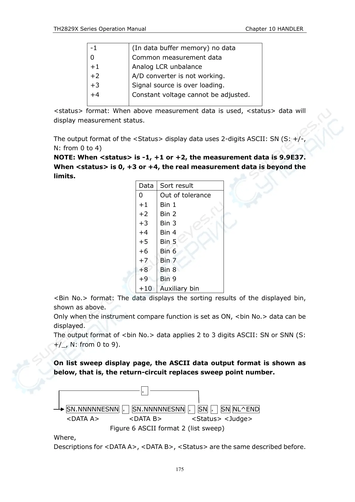 NOTE: When <status> is -1, +1 or +2, the measurement data is 9.9E37.