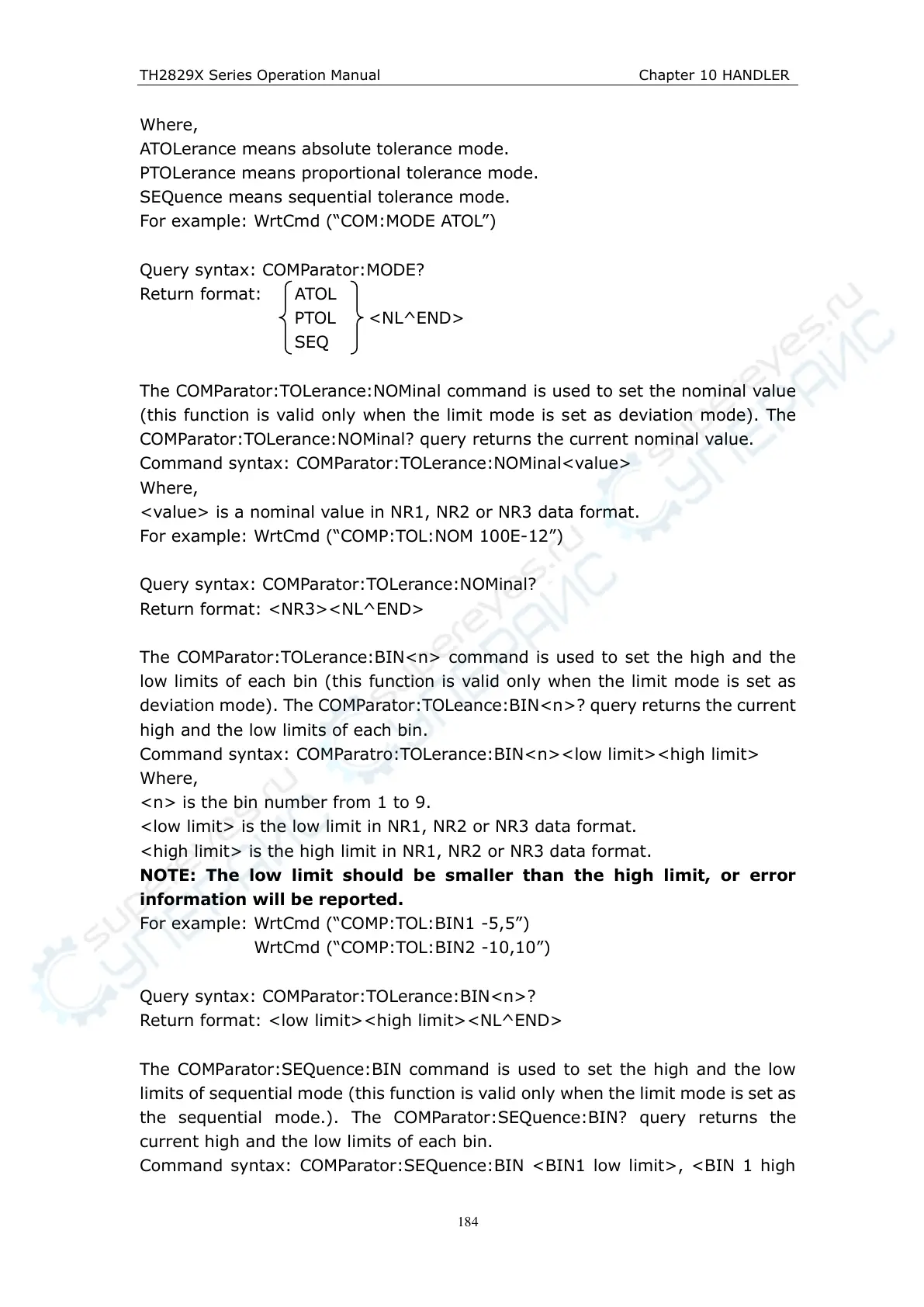WrtCmd (“COMP:TOL:BIN2 -10,10”)