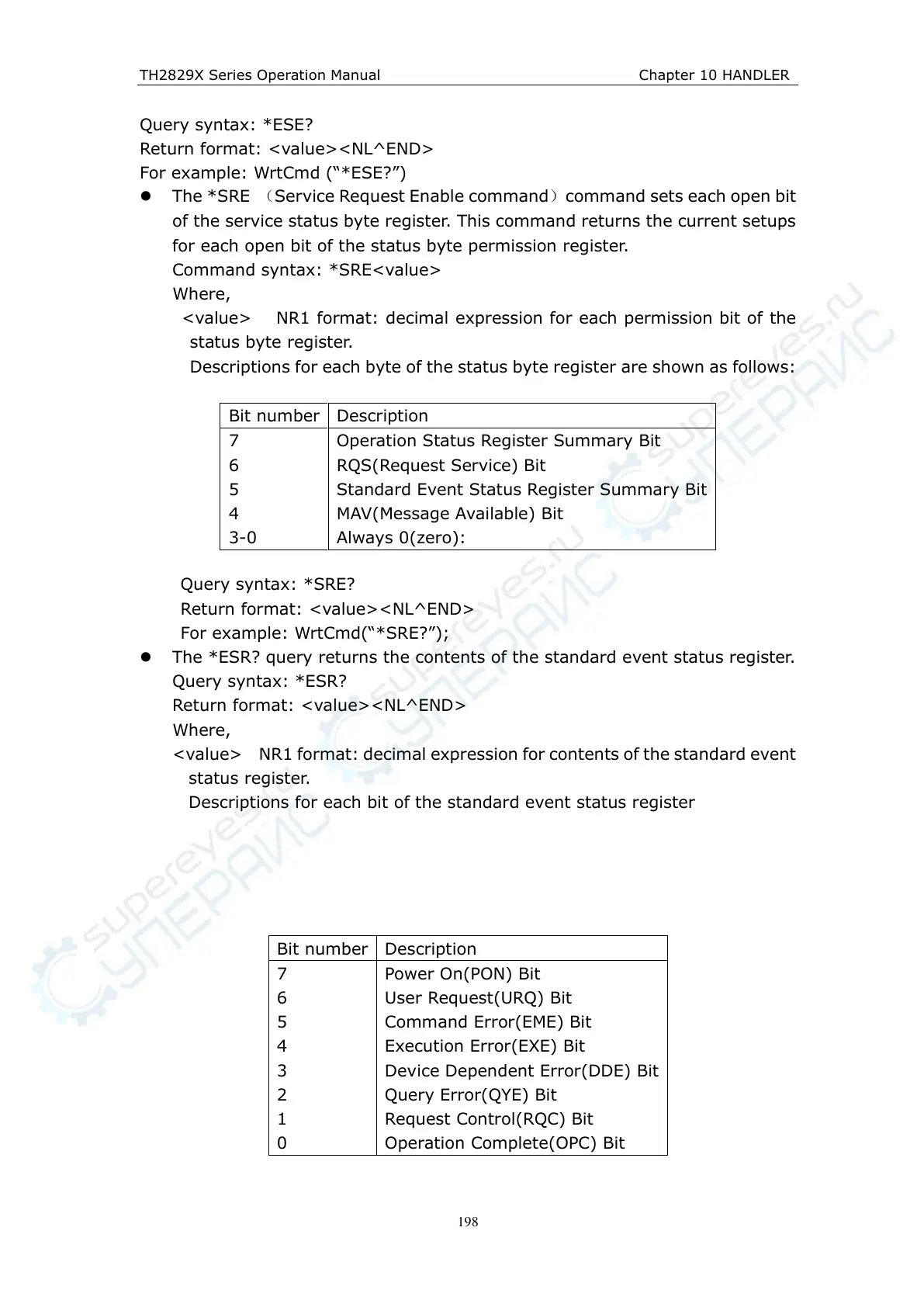 For example: WrtCmd(“*SRE?”);