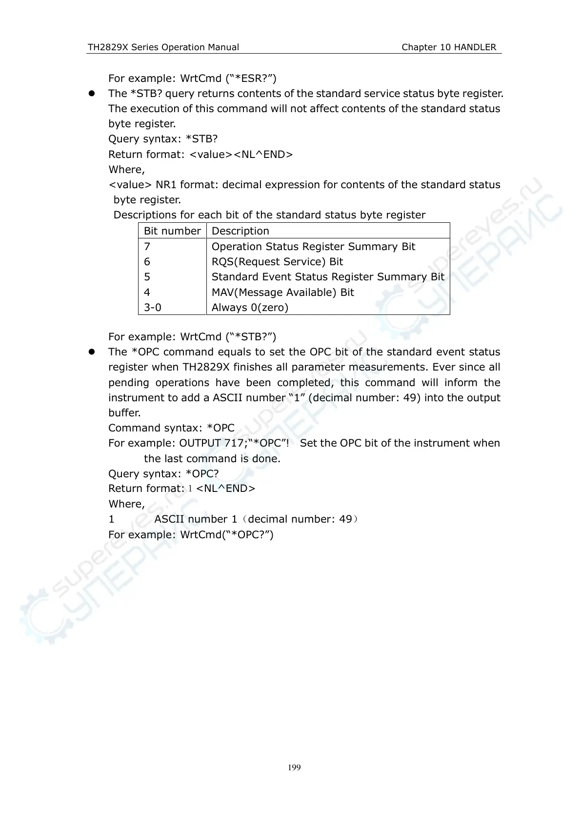 For example: OUTPUT 717;“*OPC”! Set the OPC bit of the instrument when