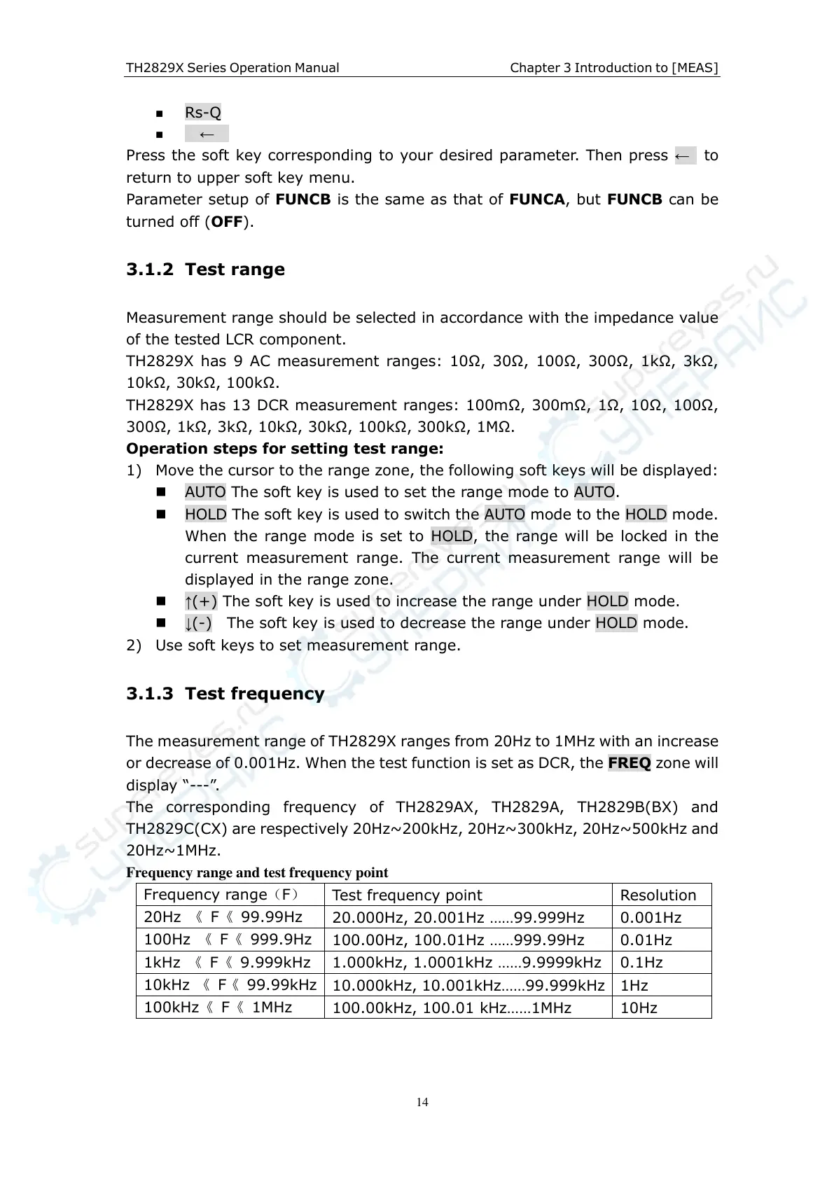 The corresponding frequency of TH2829AX, TH2829A, TH2829B(BX) and