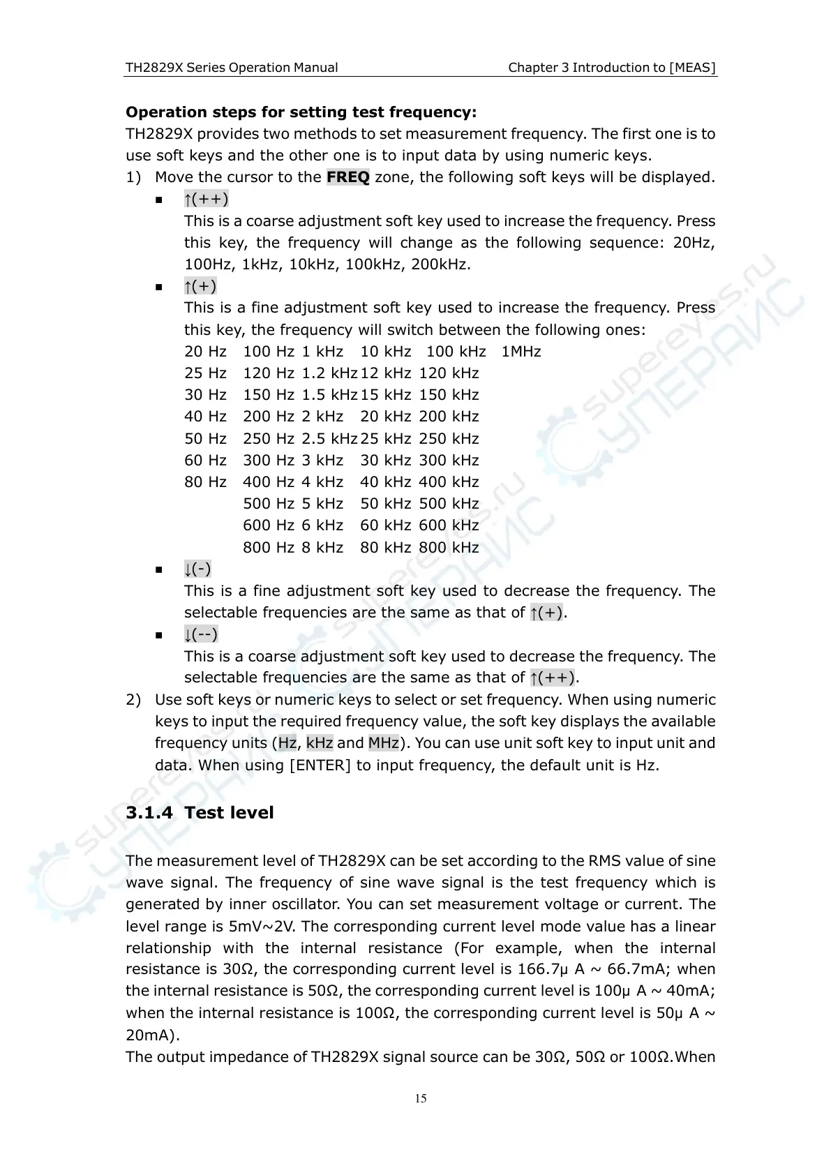 TH2829X provides two methods to set measurement frequency. The first one is to