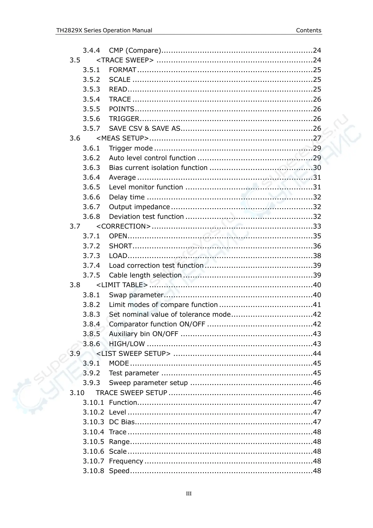 TH2829X Series Operation Manual Contents