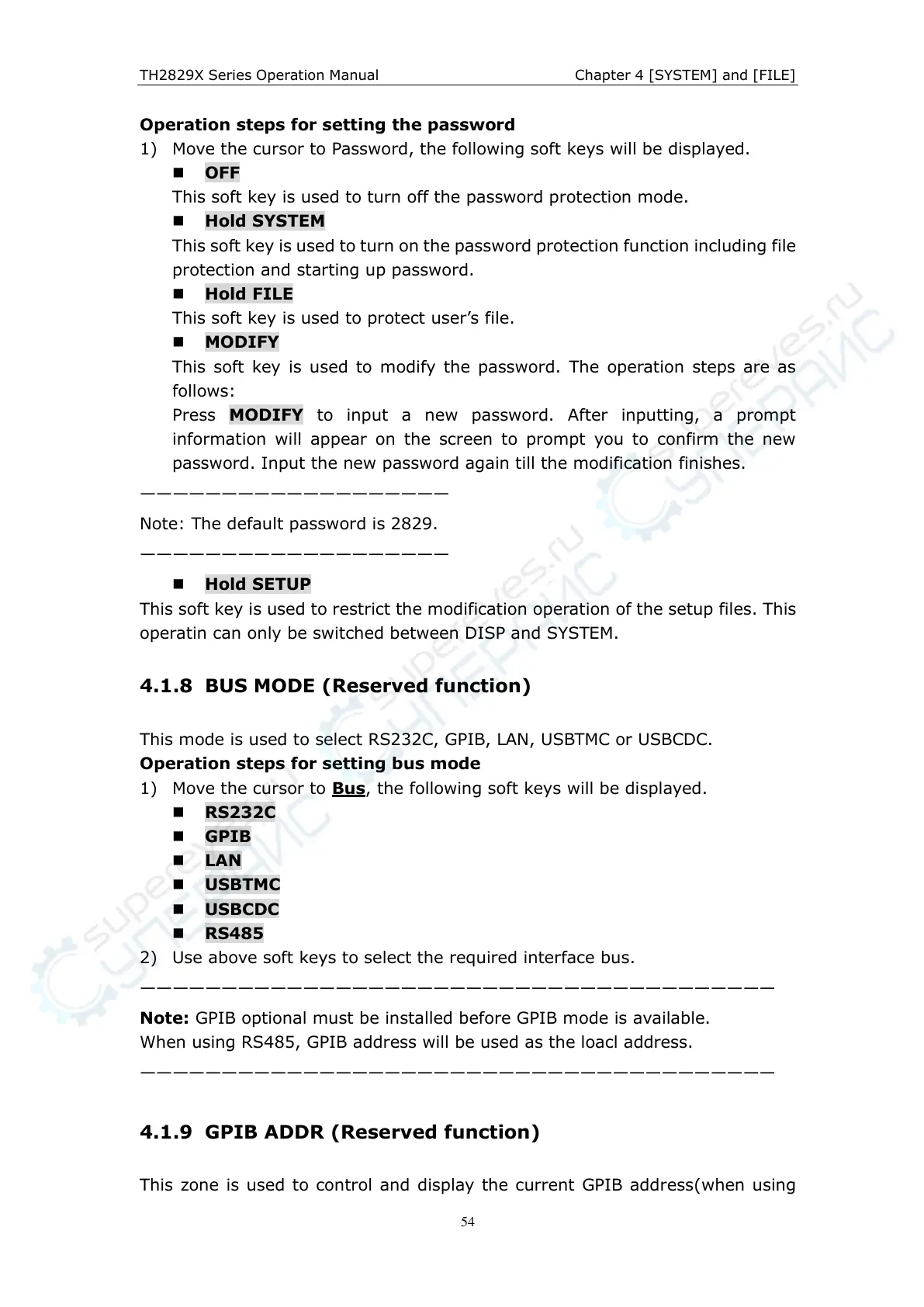 TH2829X Series Operation Manual Chapter 4 [SYSTEM] and [FILE]
