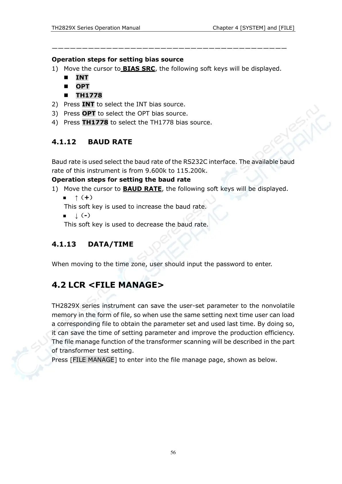 TH2829X Series Operation Manual Chapter 4 [SYSTEM] and [FILE]