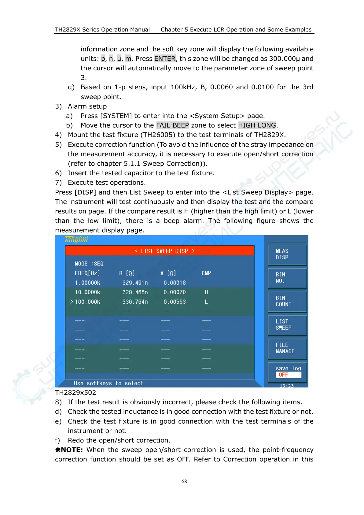 TH2829X Series Operation Manual Chapter 5 Execute LCR Operation and Some Examples