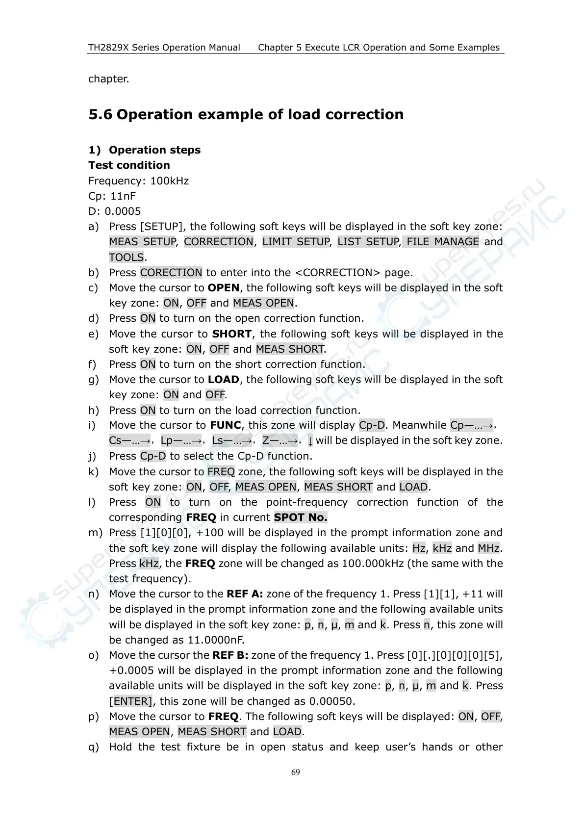 MEAS OPEN, MEAS SHORT and LOAD.