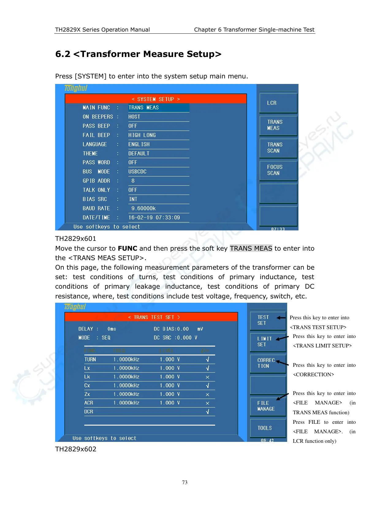TH2829X Series Operation Manual Chapter 6 Transformer Single-machine Test