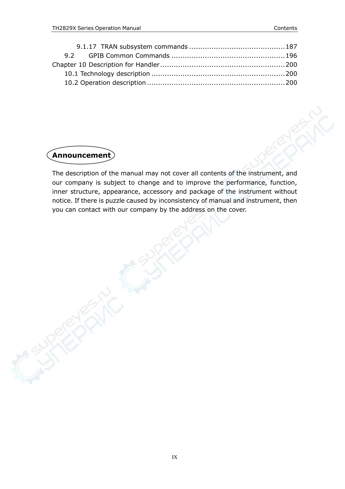 TH2829X Series Operation Manual Contents