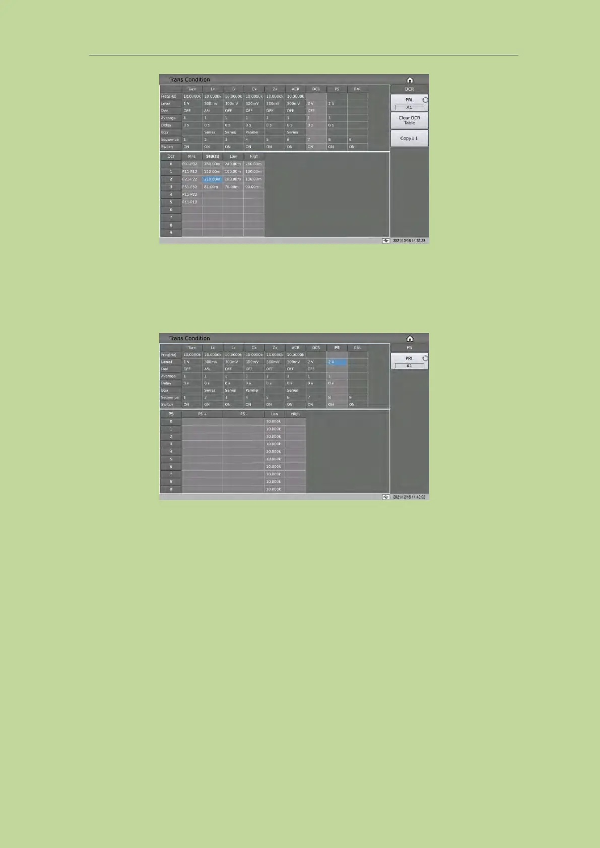 On the <Trans Condition> page of the transformer scan, touch or move the cursor to a column of PS