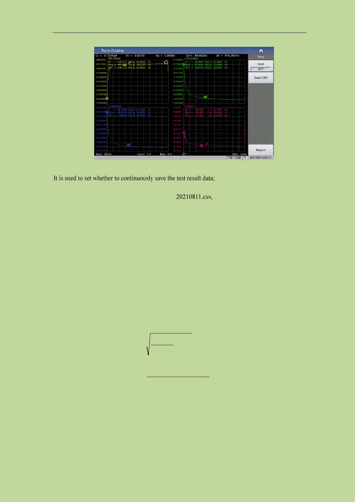 When the user selects the scan parameters as frequency and impedance, the instrument will