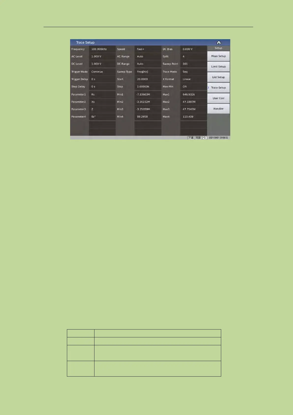 This display function page is used to complete the setting of trace sweep measurement parameters,