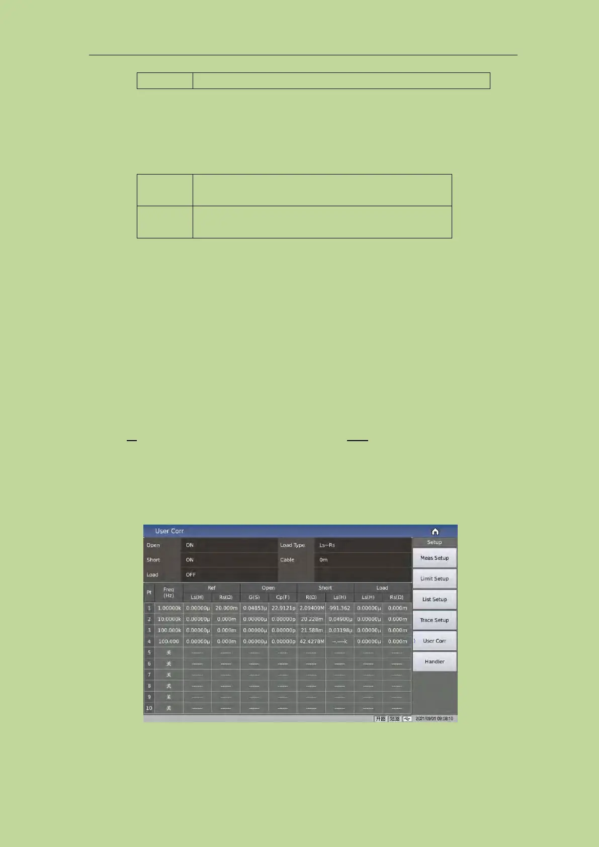 The open, short and load correction functions on the <User Corr> page can be used to eliminate
