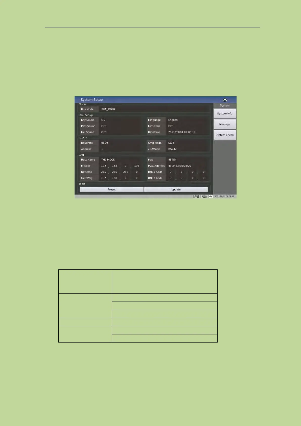 Press the menu key [System] to enter the <System Setup> page. As shown in Figure 4-1-1:
