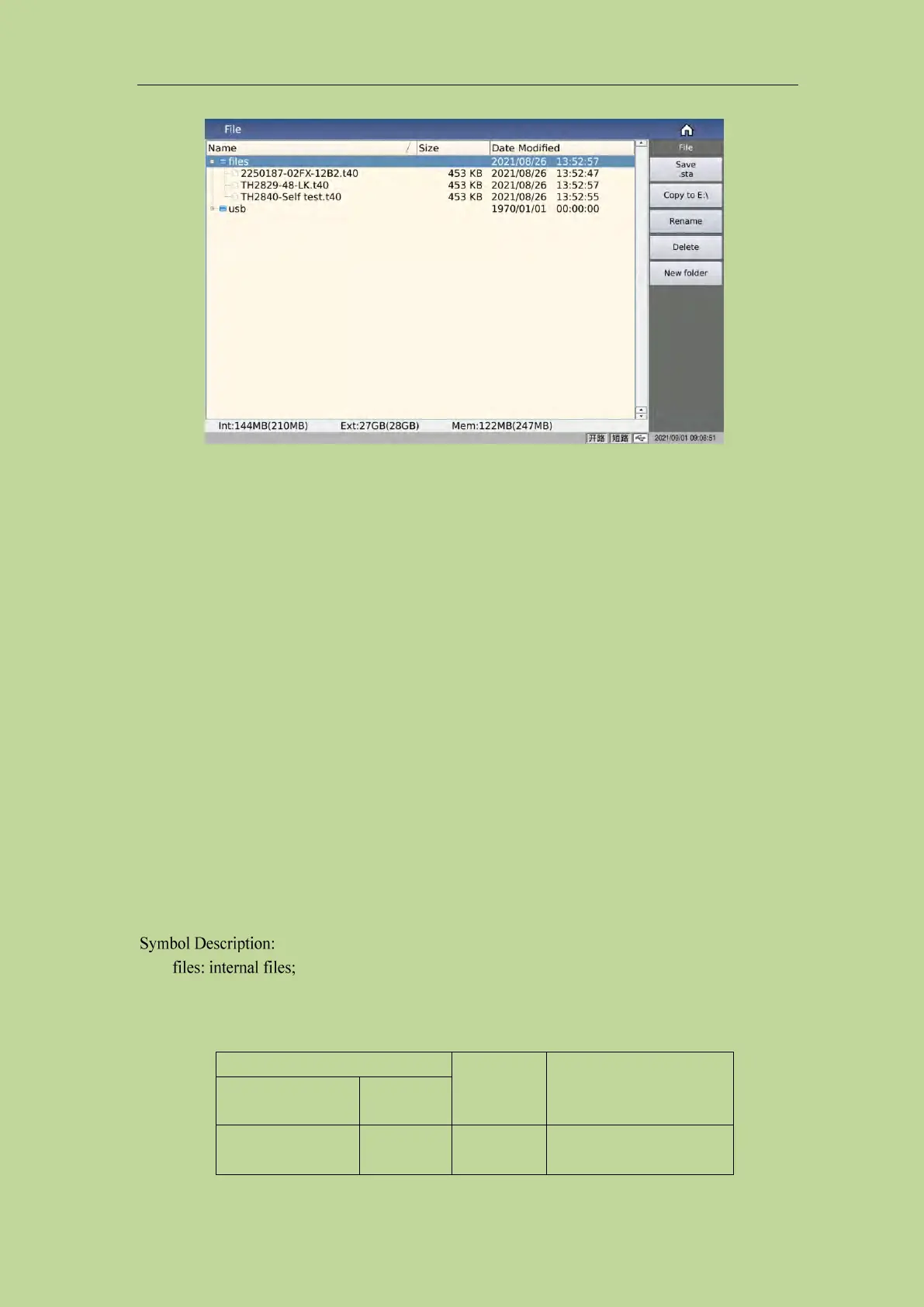 drive of the instrument. The test results and screenshots can only be saved in the external USB flash