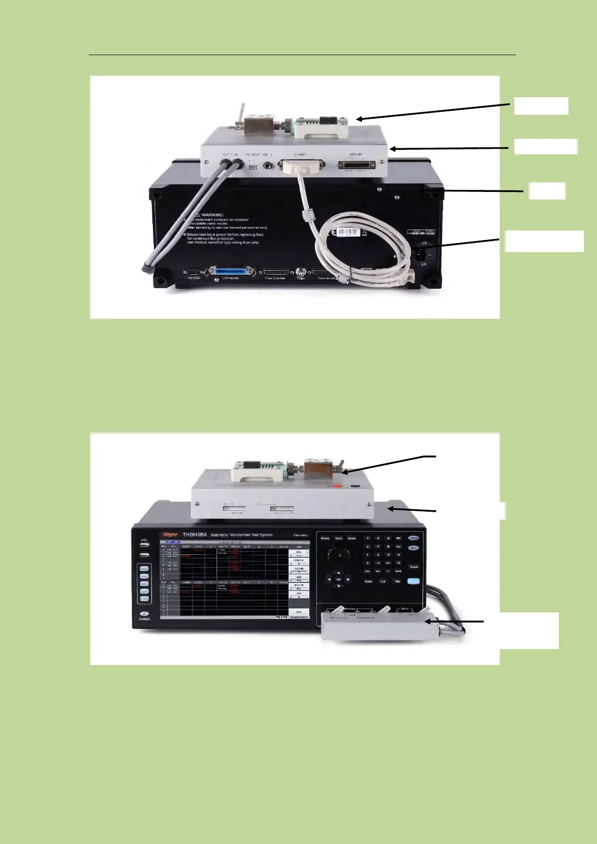 Connect the scanning test cable to TH2840X