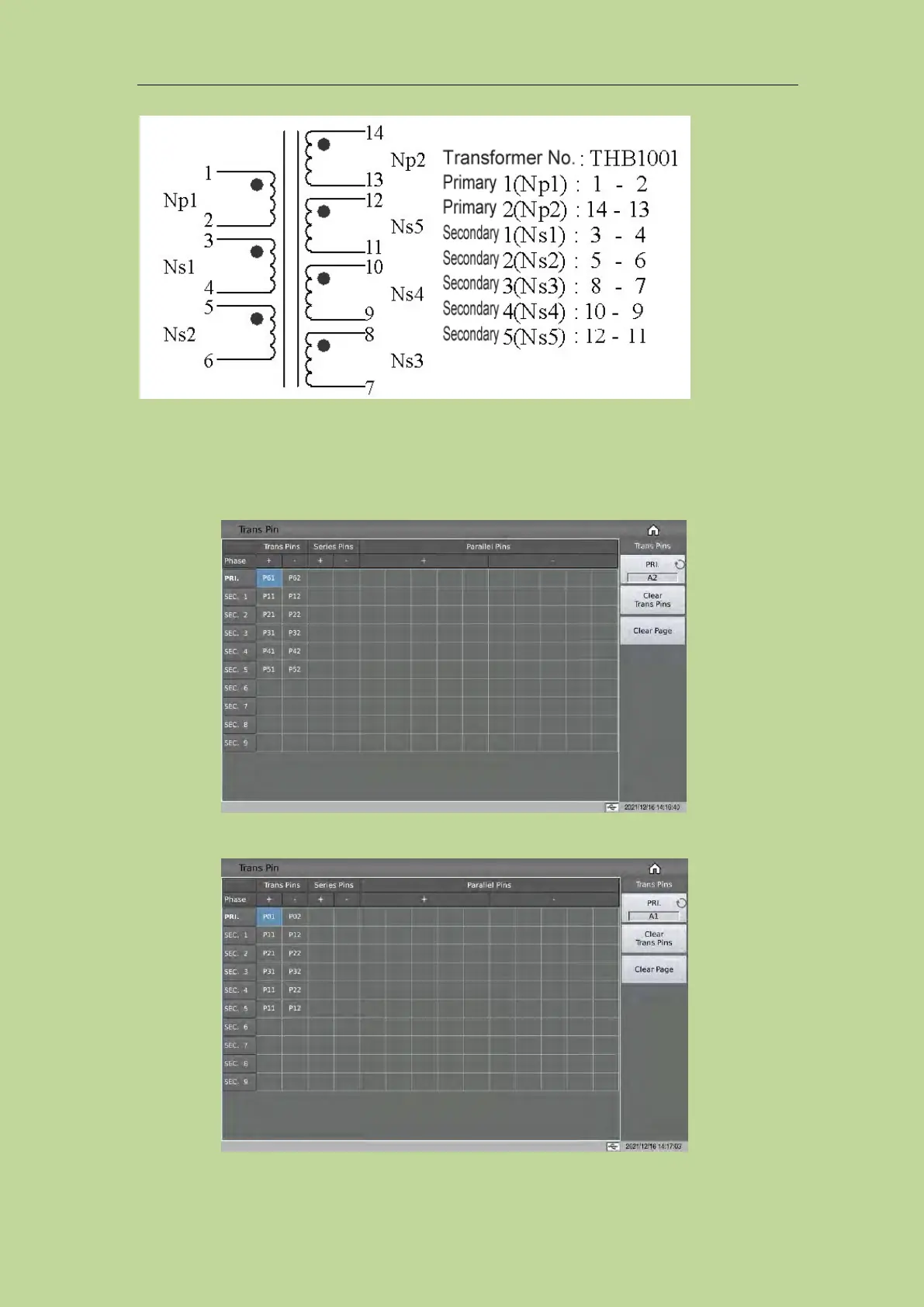 The following is the pin setting screen of PRI: A1 (PRI: A1 is used for Np1 as the primary winding):