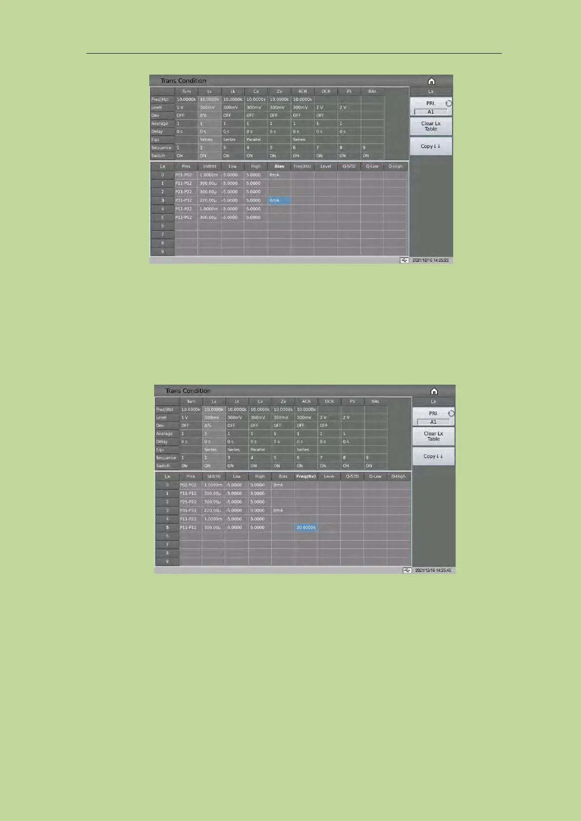 transformer Lx limit setting table, touch or move the cursor to the Lx frequency area. After inputting