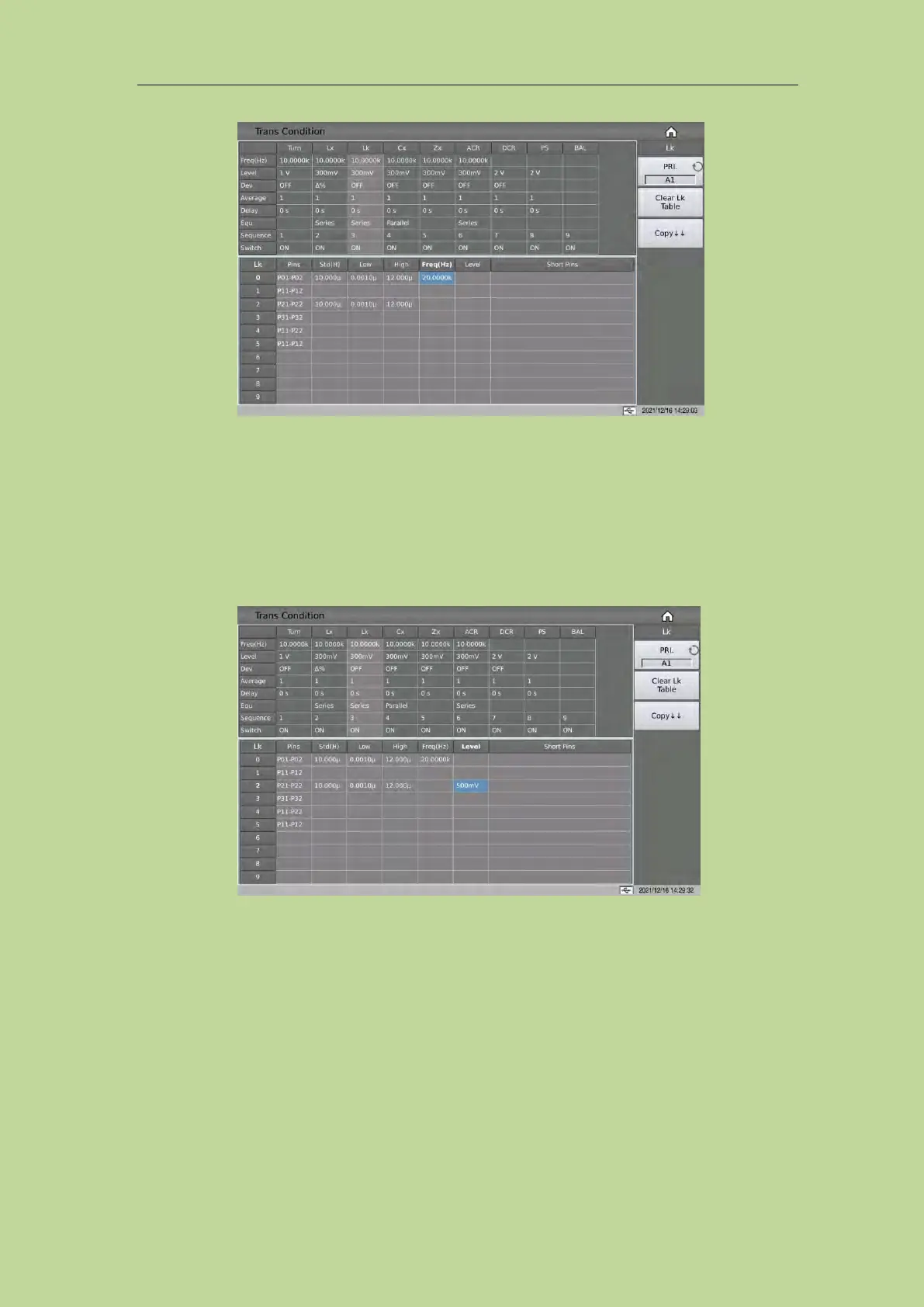 If the user needs to use different levels to test different Lk pins of the transformer, in the transformer