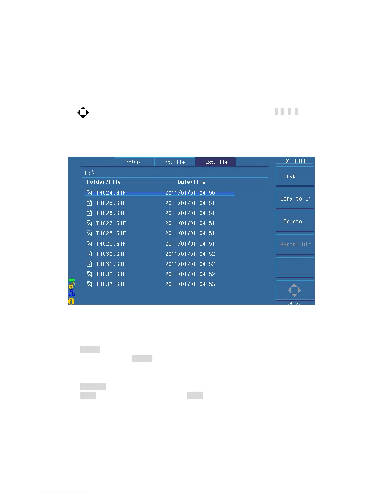 Sub Dir Enter the sub-directory. Using the arrow key or the roller to choose a file,