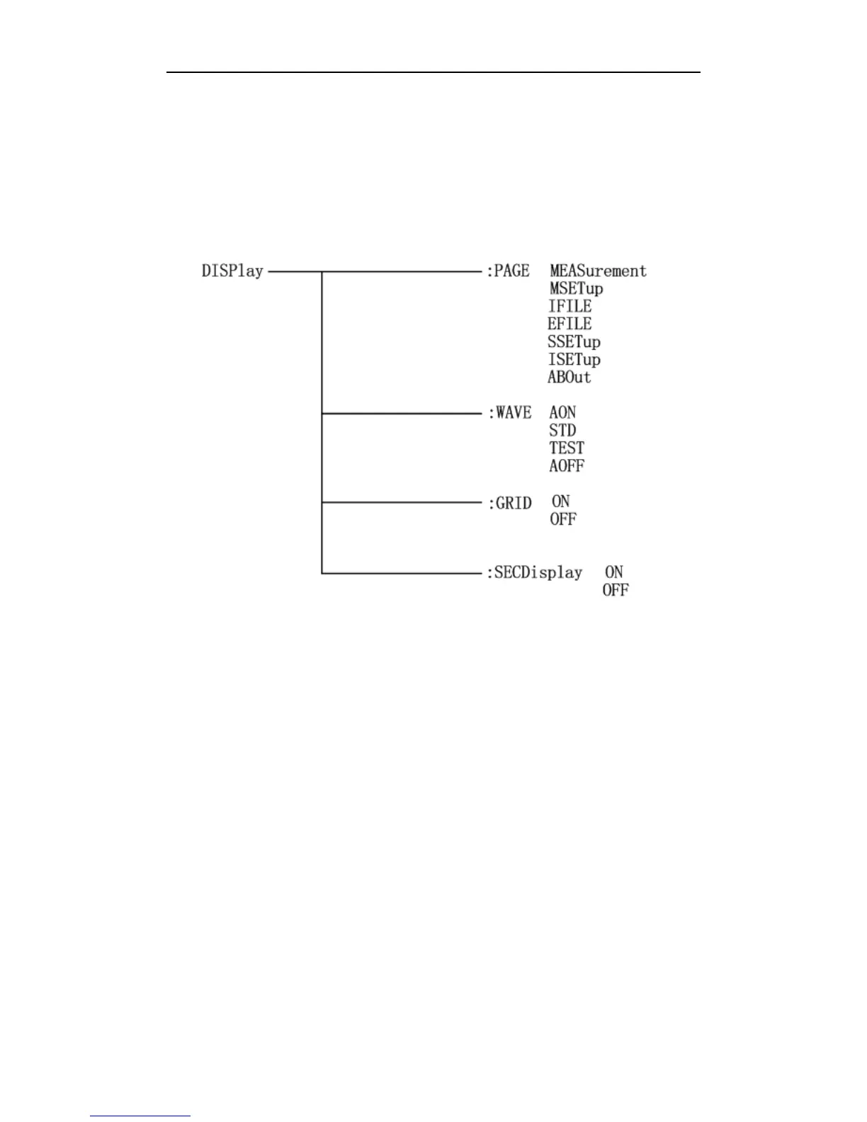 The DISPlay subsystem commands set the display page. Figure 8-2 shows the command tree of