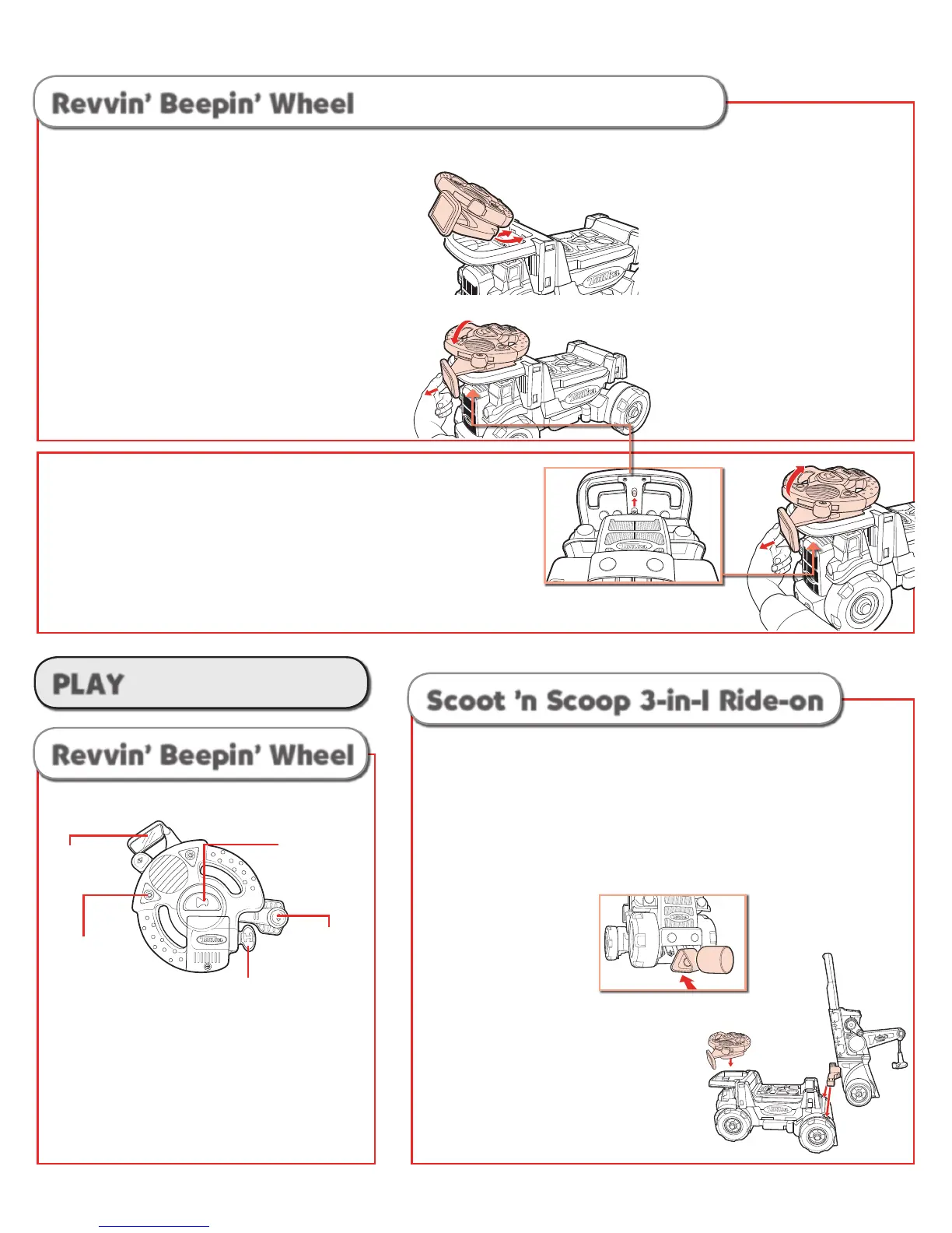 To attach to SCOOT ’N SCOOP 3-IN-1 RIDE-ON: