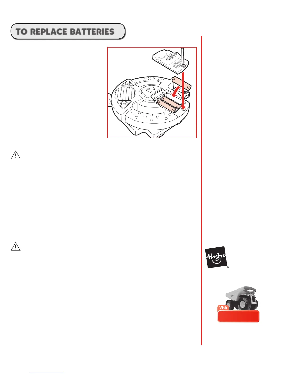 4. Remove batteries if product is not to be played with for a long time.